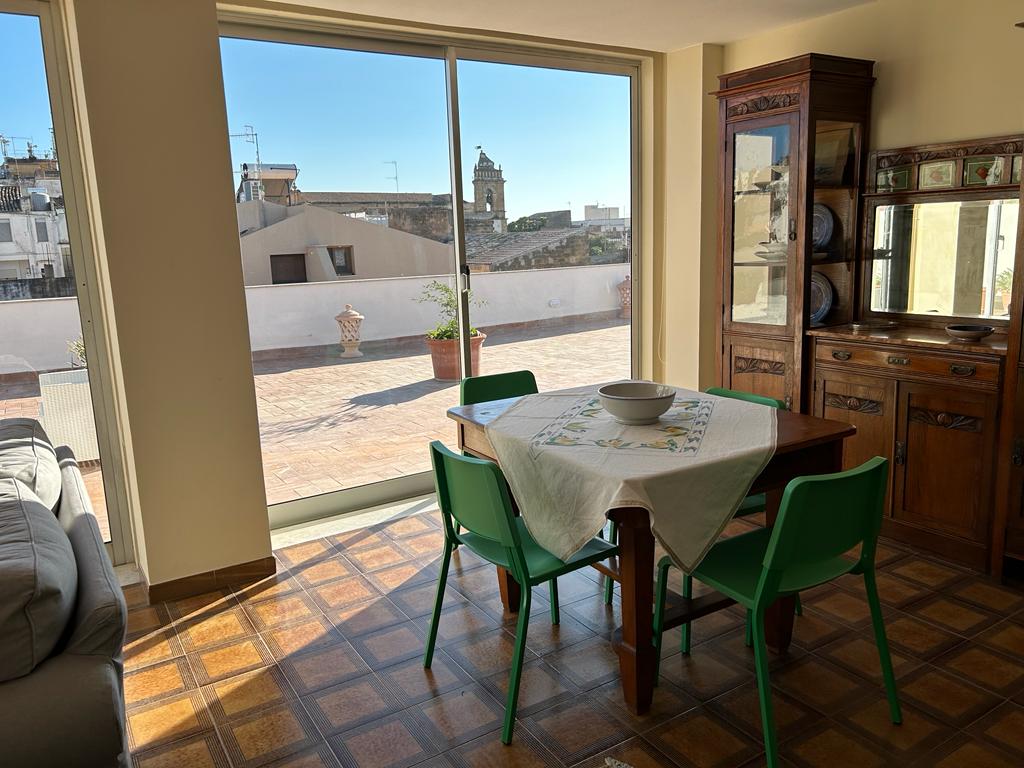 Descrizione vani. Camera da letto "A" con 2 posti letto (Letto Matrimoniale). Camera da letto "B" con 3 posti letto (Letti Singoli). Living con zona TV e zona Pranzo. Cucina abitabile. Bagno con WC, acqua calda e fredda, doccia. Terrazza scoperta su vista sui campanili delle chiese di Menfi
